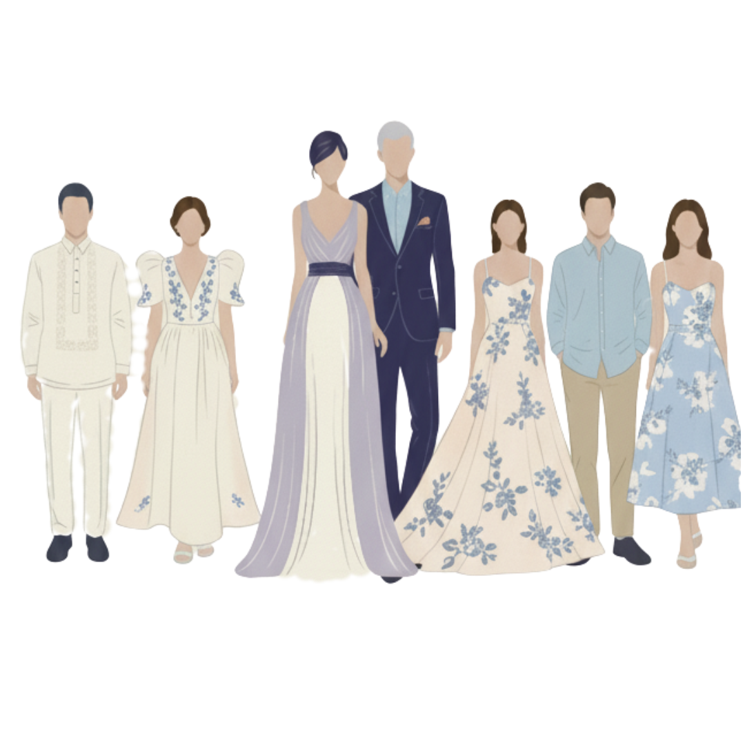 Formal attire, please. Gentlemen in barong or suits, and ladies in long gowns in soft pastel shades.